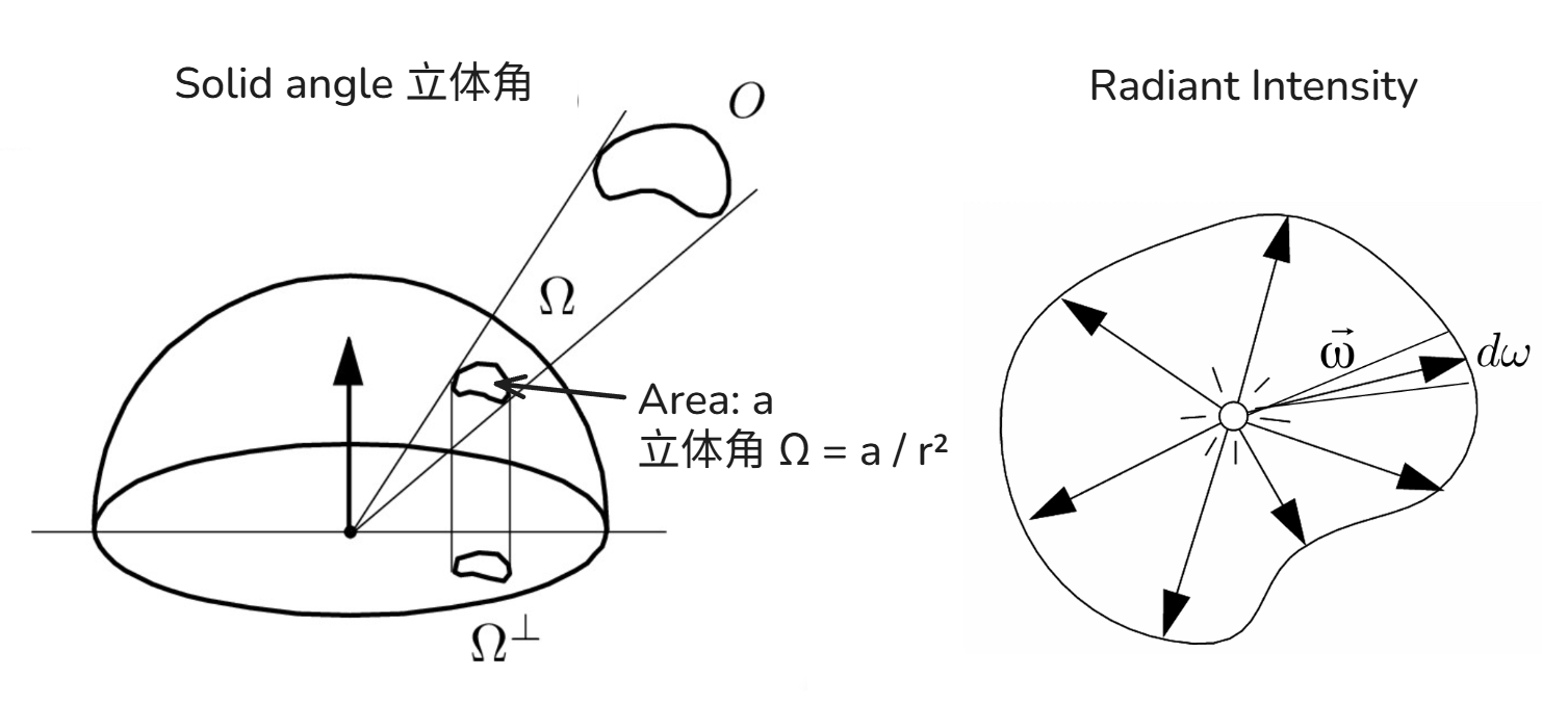 下图是对 Solid angle 和 Radiant Intensity 两个概念的图解