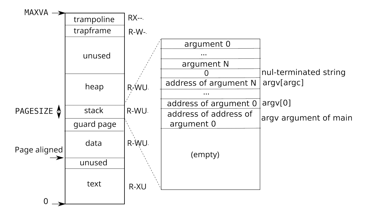 但 trapframe 和 usyscall 不是用户内存的内容,它们被存放在虚拟地址的顶部(分别在 TRAPFRAME 和 USYSCALL),所以它们没有被释放。