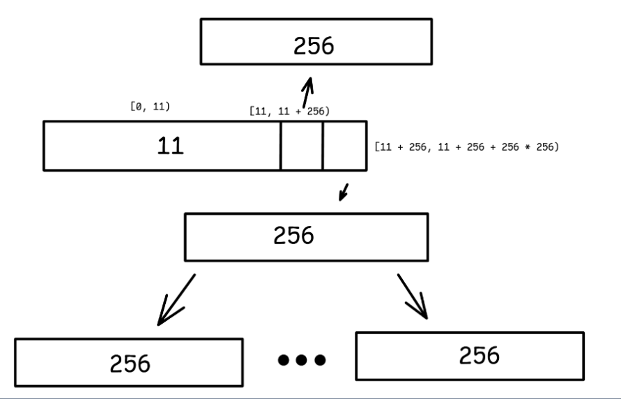这道题让我们增大 xv6 最大文件的大小。原本的 xv6 的每个 inode 支持 12 个普通块和一个间接块,那么原本的最大文件占据 12 + 256 = 268 个块。我们需要把 inode 修改为支持 11 个普通块、一个间接块、一个双重间接块,这样最大文件就能占据 11 + 256 + 256 * 256 = 65803 个块。